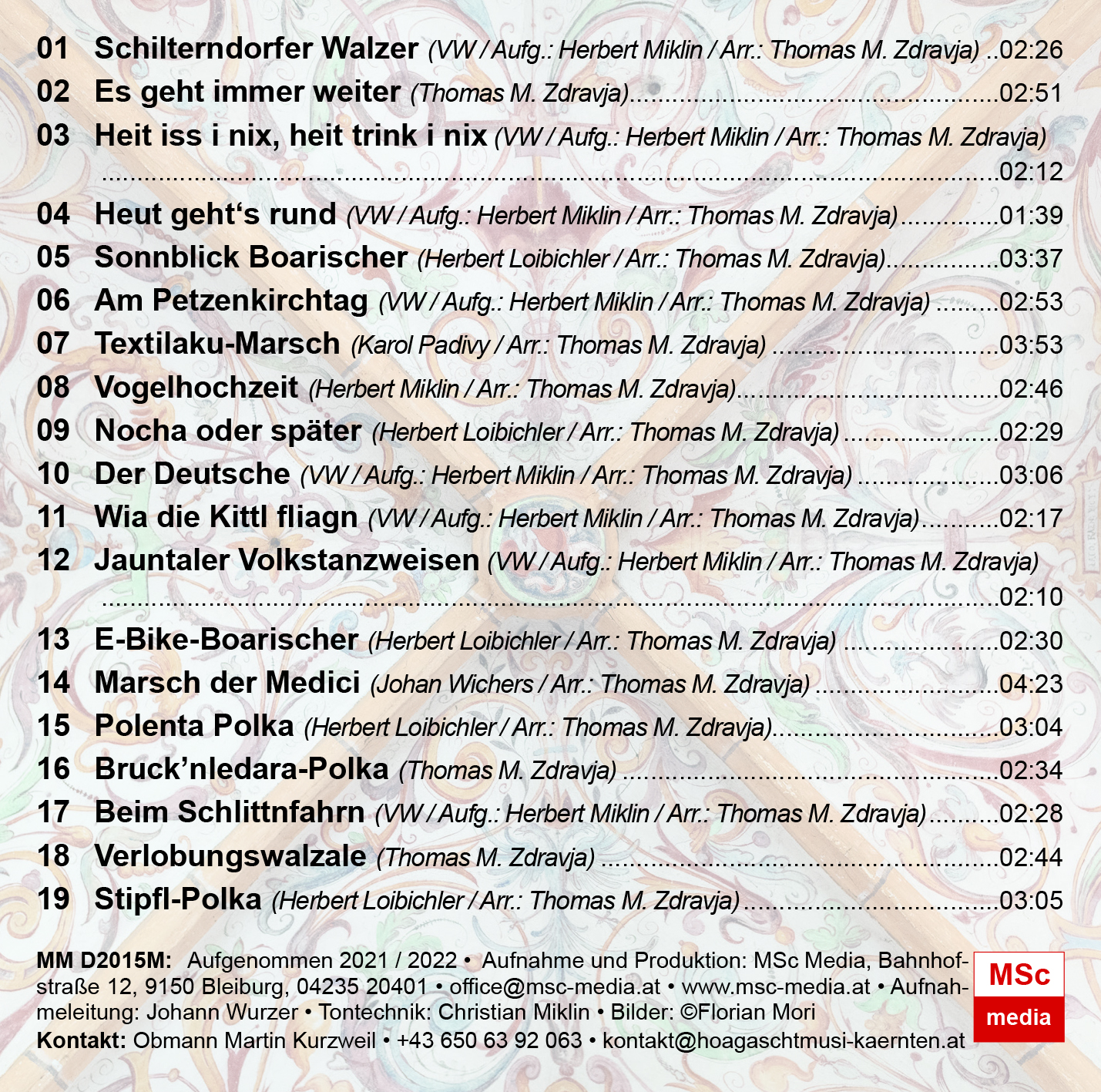 Thomas Zdravja hat u.a. Stücke des Volksmusikanten Herbert Miklin neu arrangiert, es finden sich Eigenkompositionen und bekannte Melodien auf der CD.